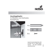 Amortizor pentru ușă mobilă Hettich, plastic gri, pachet 4 bucăți, îngust