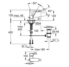 Baterie bideu monocomandă Grohe Plus cartuș ceramic 28 mm Grohe SilkMove set evacuare cu tijă crom