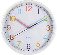 Ceas perete cu cifre colorate și ramă albă Ø 25,5 cm