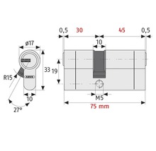 Cilindru de siguranță dublu Abus E45N 30/45 mm, 3 chei