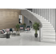 Eleganță rafinată și lux accesibil cu colecția de gresie Cargo White cu aspect de marmură. Plăcile de gresie cu finisaj lucios reflectă lumina și creează o atmosferă luminoasă și aerisită, în timp ce culorile clasice de alb, negru și gri se potrivesc perfect cu orice tip de decor. Treapta și contratreapta completează perfect designul, oferind un flux armonios și un plus de siguranță, fără a face compromisuri în privința stilului.