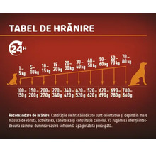 - Indicaţie cu privire la hrănire1 - 5 kg100 - 150 g, 5 - 10 kg 150 - 200 g, 10 - 15 kg 200 - 270 g, 15 - 20 kg 270 - 340 g, 20 - 30 kg 340 - 420 g, 30 - 40 kg 420 - 520 g, 40 - 50 kg 520 - 620 g, 50 - 60 kg 620 - 690 g, 60 - 70 kg 690 - 780 g, 70 - 80 kg 780 - 860 g.