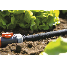 Pentru irigarea țintită, cu economie de apă, a rândurilor de plante. Funcționare la presiune deja redusă. La lungimi fixe, gata echipat de racordare. Cu supapă manuală pentru reglarea debitului și a presiunii. Poate fi scurtat și prelungit individual până la 30 m. Lungime 15 m.