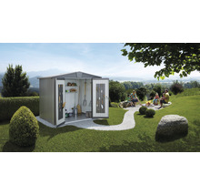 Cu o suprafață de asamblare de 3,4 m² și un volum de 6,3 m³, șopronul de grădină oferă suficient spațiu pentru unelte de grădină, mobilier și vehicule pe două roți. Șopronul de grădină are un design argintiu elegant, cu jgheab de ploaie, set de rafturi și ventilație. Fabricată din metal galvanizat și vopsită de înaltă calitate, această magazie de grădină este durabilă și rezistentă la intemperii.