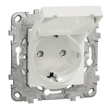 Priză simplă cu împământare Schneider Unica, capac de protecție IP44, alb
