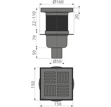 Sifon polipropilenă pardoseală Alca APV6211 grătar polipropilenă 150x150 mm ieșire verticală Ø 50 mm