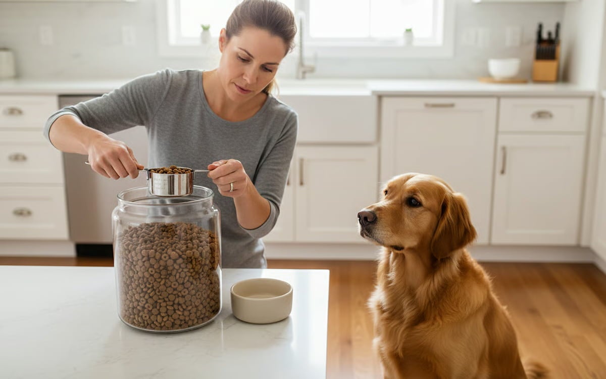 - Măsurați întotdeauna cantitatea de hrană folosind o cană dozatoare și respectați recomandările producătorului adaptate la vârsta, rasa și nivelul de activitate al câinelui.