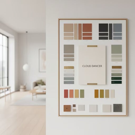 - Efectul final al amenajării este puternic influențat de combinațiile cromatice alese. Cloud Dancer se potrivește perfect cu nuanțe de gri pentru un aspect modern și rafinat, cu bej, maro și cappuccino pentru căldură și naturalețe, cu verde olive sau salvie pentru o conexiune subtilă cu natura, dar și cu accente pastelate sau metalice pentru un plus de personalitate și eleganță.