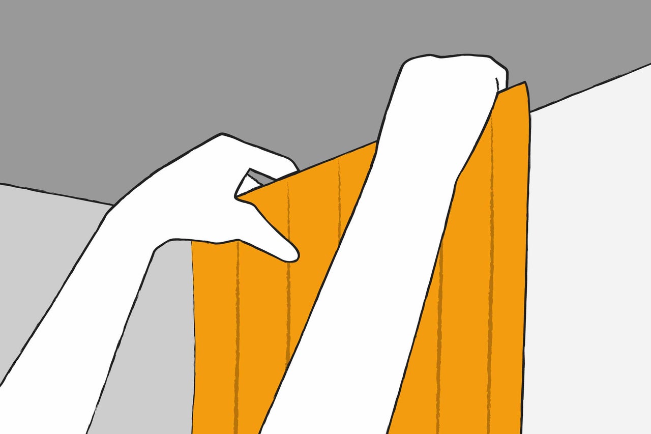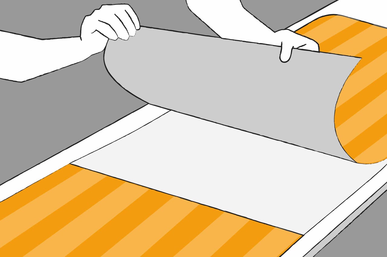 - Tăiere: Întindeți tapetul și tăiați fâșiile individuale la dimensiune folosind o foarfecă pentru tapet, de preferat pe o masă de tapet.