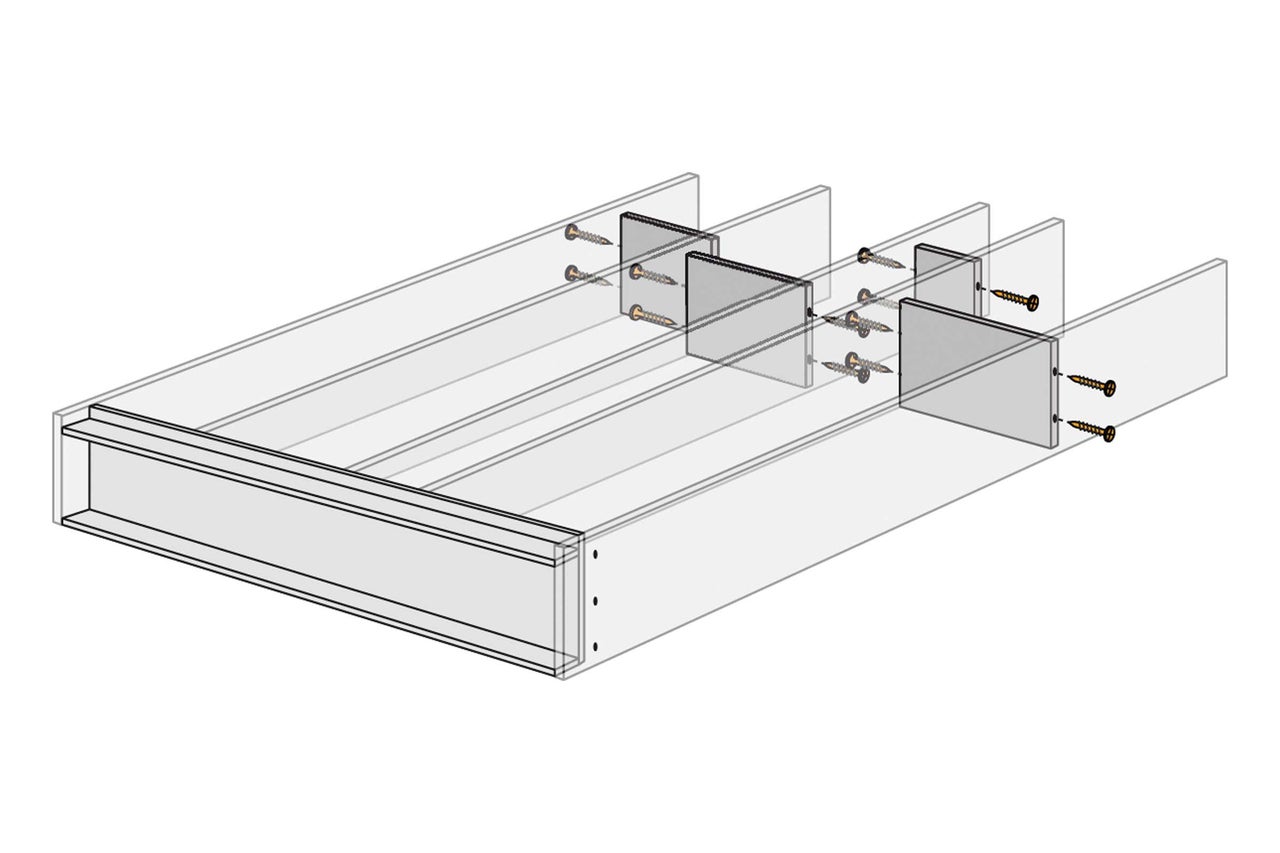 - Fixare: Înșurubați suporturile prin panoul superior cu șuruburi de 4x40 mm.