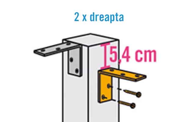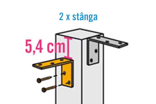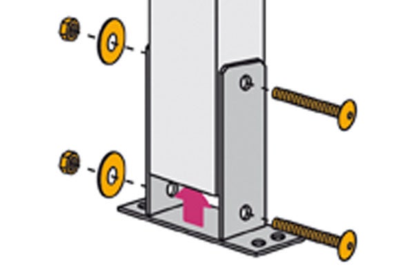 - Fixare: Fixați suporturile pe grinzi folosind un șurub de transport (cu piuliță și șaibă) prin fiecare gaură.