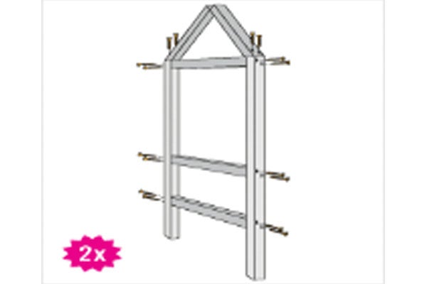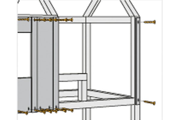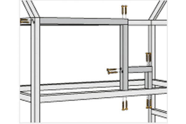 - Fixare: înșurubați grinzile pe montanți cu șuruburi universale (5 x 80 mm). Repetați pentru cealaltă parte.