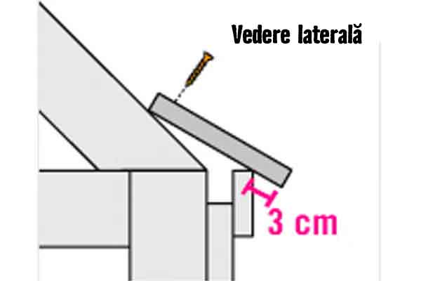 Consolă: Lăsați o consolă (extensie laterală) de 9 cm pe marginile laterale ale acoperișului. Fixați-le pe căpriori.
