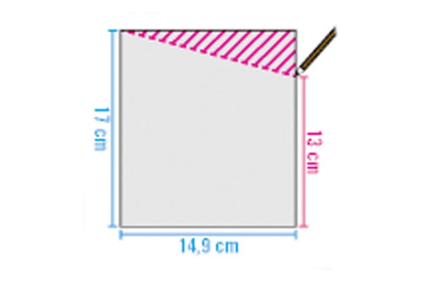 - Tăierea în unghi: Pentru piesele laterale, măsurați 13 cm de la marginea inferioară pe latura lungă (170 mm) și trasați o linie până la colțul opus. Tăiați teșitura pe ambele laturi.