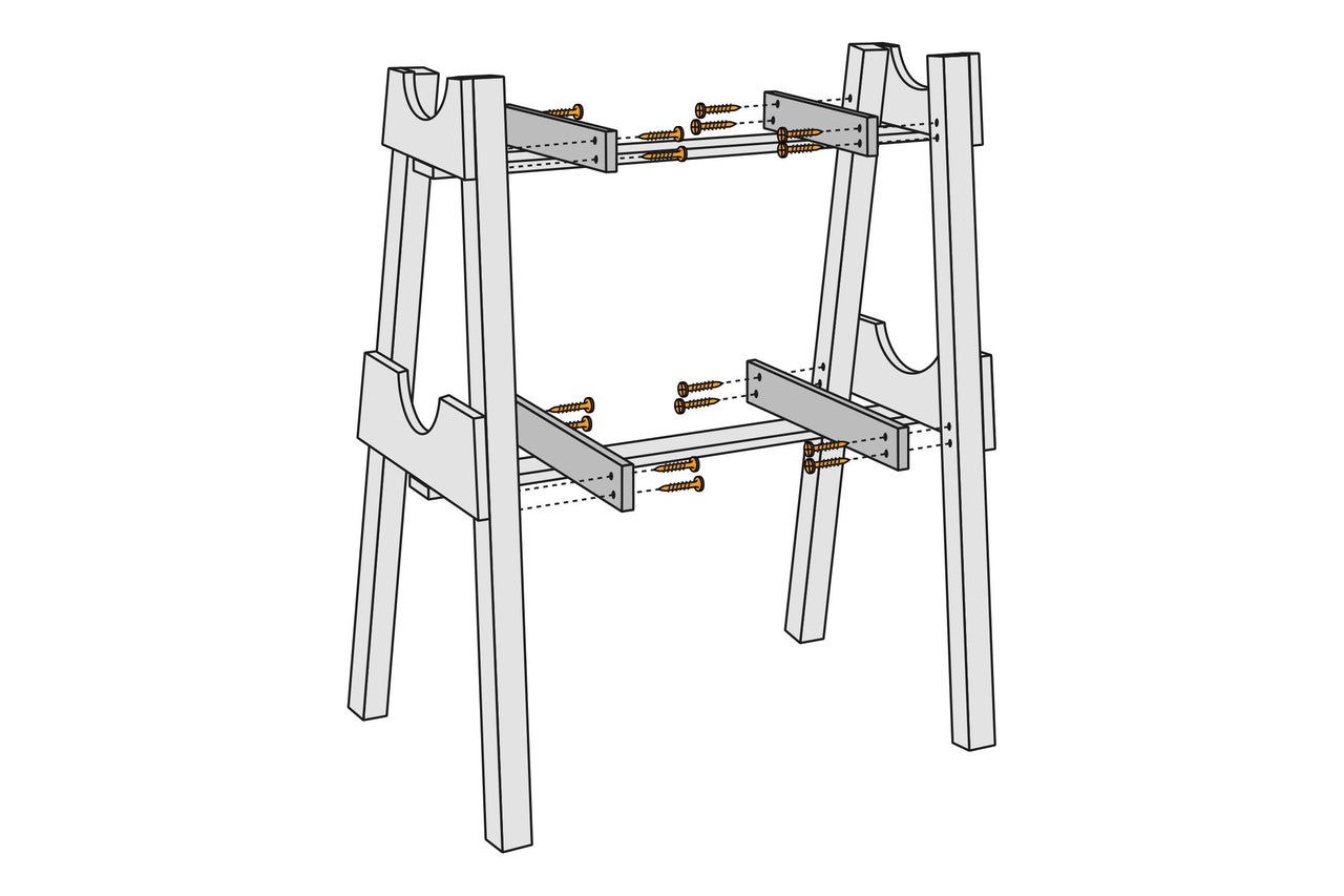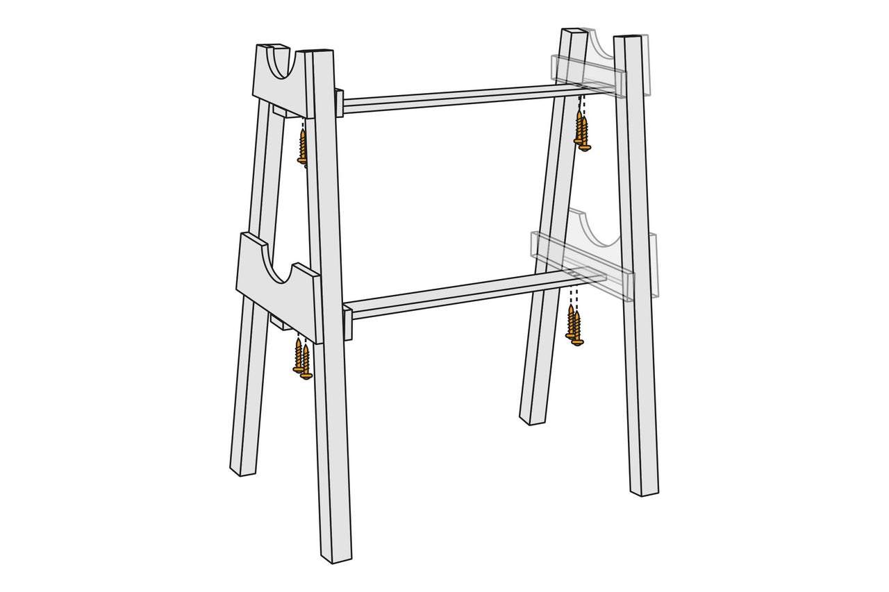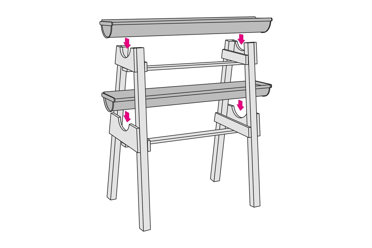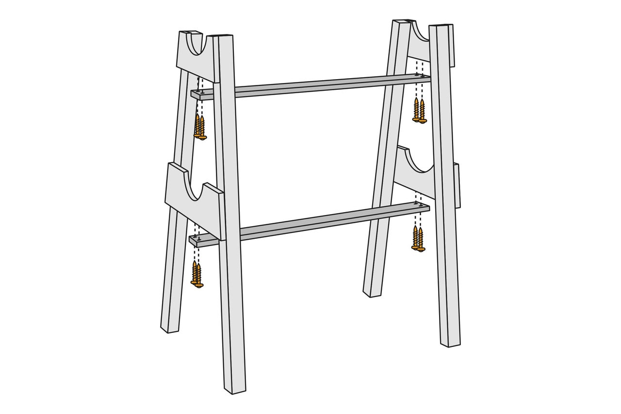 - Finalizare: Împărțiți scândura în jumătate și decupați semicercul pentru a obține cele două suporturi de sus.