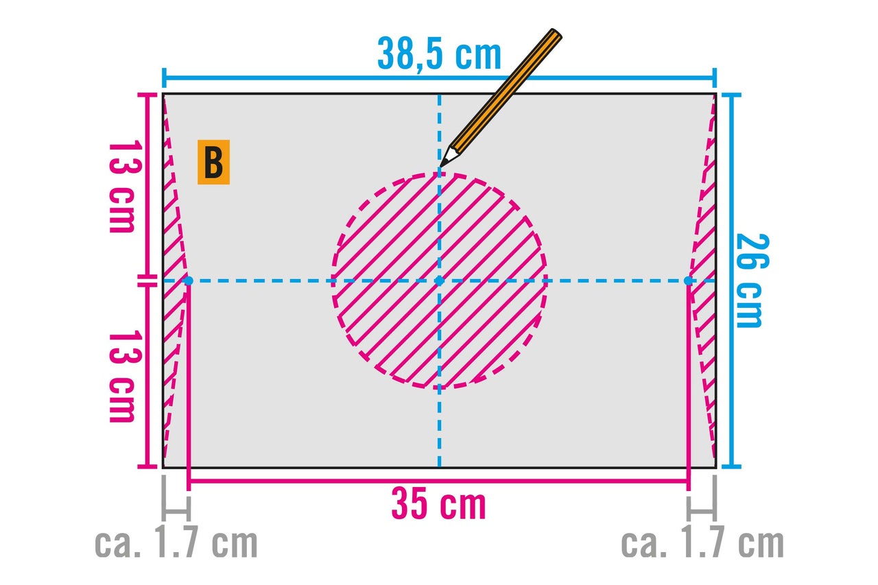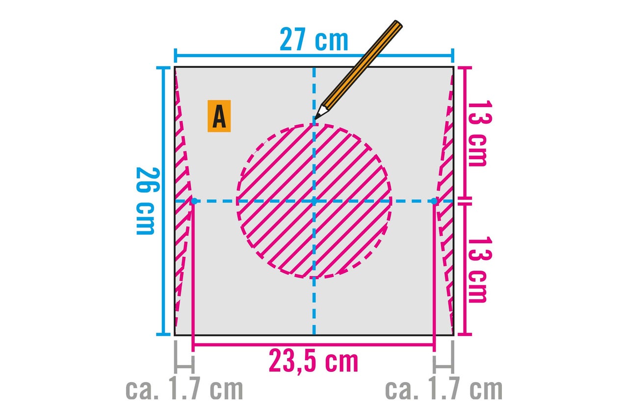- Decuparea: Folosiți un compas (rază 7,5 cm) pentru a desena cercul central.