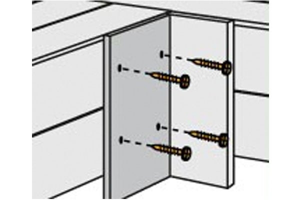 - Picior lateral: Plasați celălalt picior al îmbinării de colț la un unghi de 90 grade, aliniat cu panourile de acoperire ale secțiunii inferioare. Înșurubați-l similar.