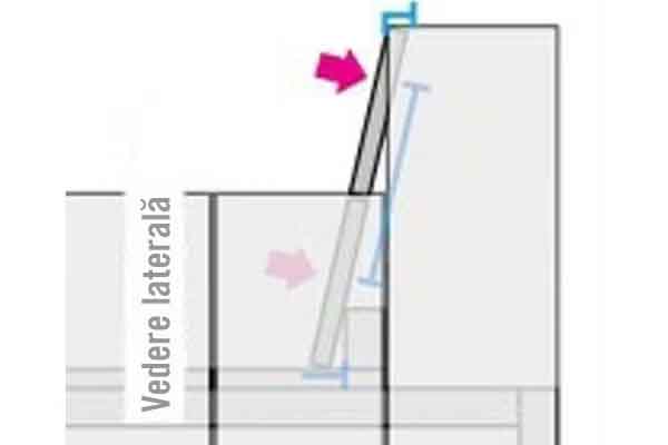 - Aliniere: Panoul frontal trebuie să fie la același nivel cu exteriorul și lateralul panoului de acoperire al secțiunii inferioare.