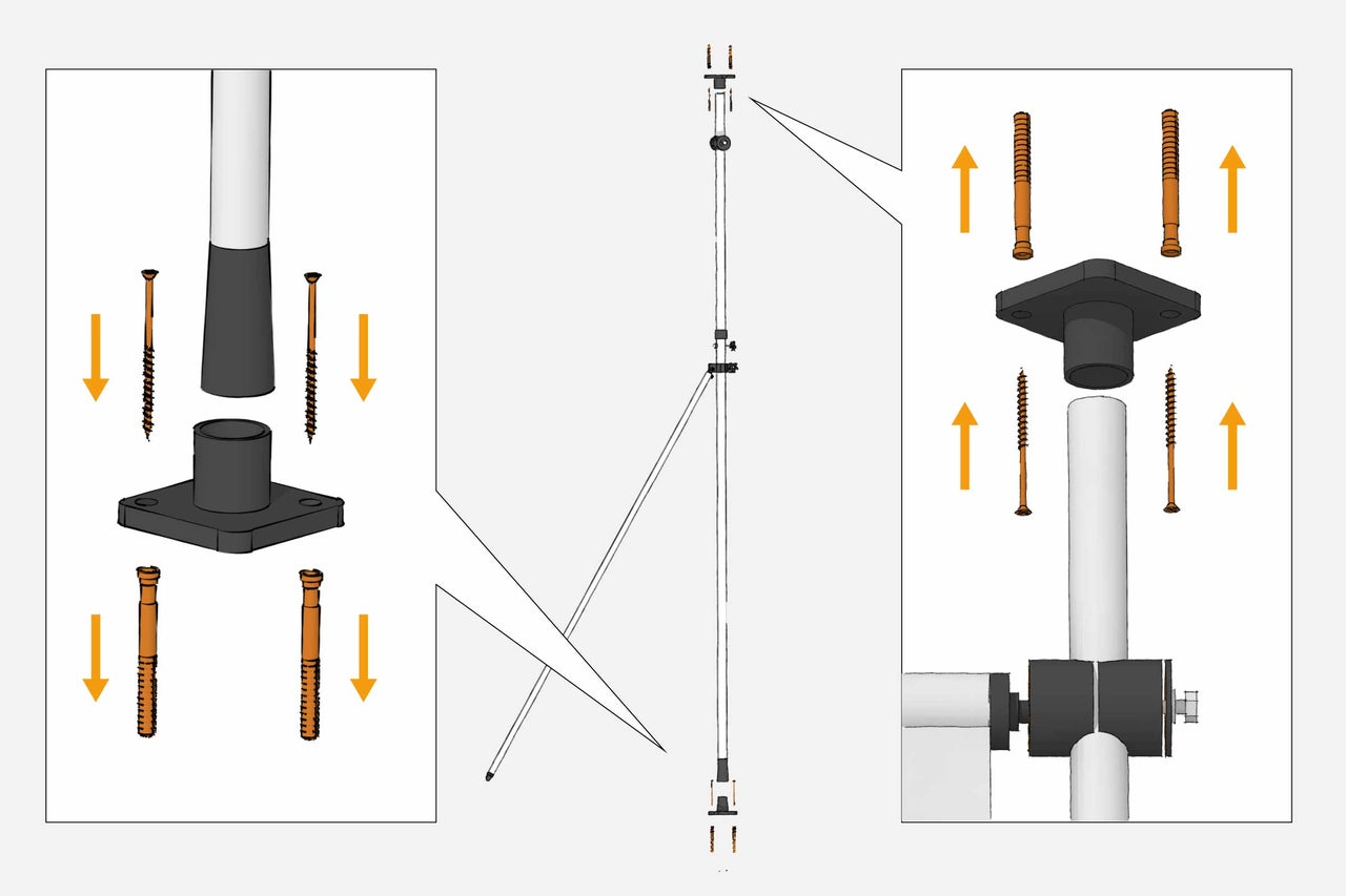 Marcați și găuriți găurile pentru baze în podea și tavan (sau grindă), folosind o nivelă pentru a asigura alinierea perfectă.